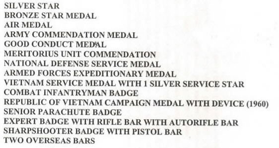 Survey Team Leader-KIA. His Awards include the following, in addition to the