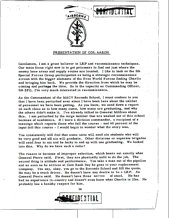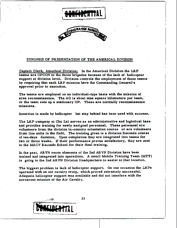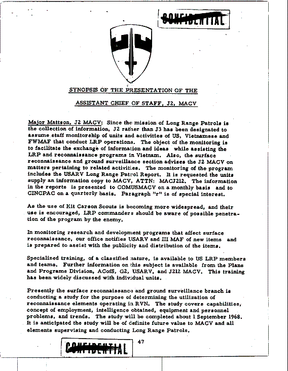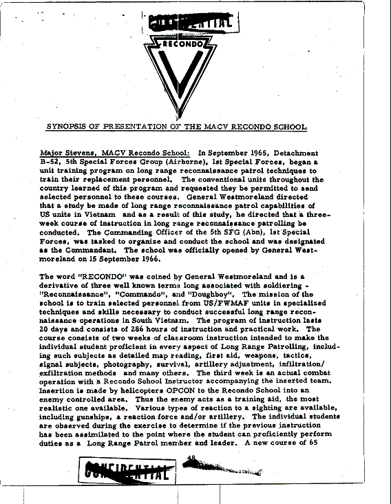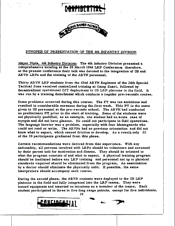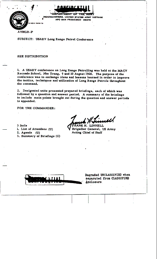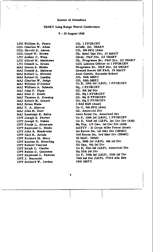 LONG RANGE PATROL CONFERENCE, MACV RECONDO SCHOOL 9 & 10 AUGUST 1968