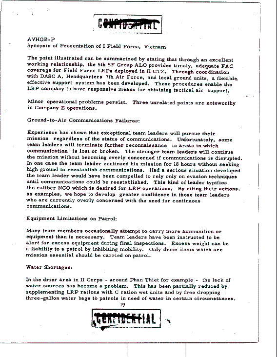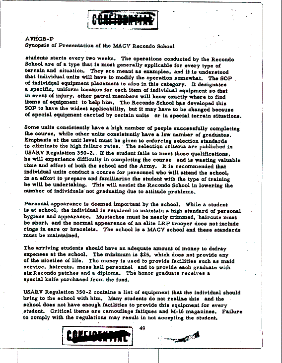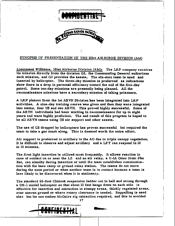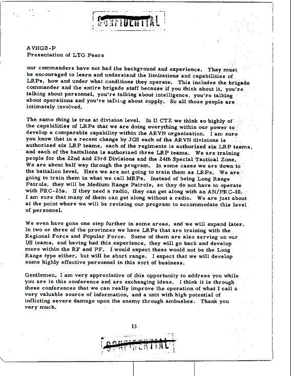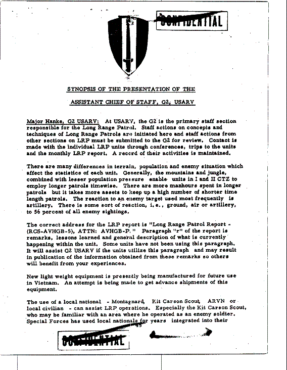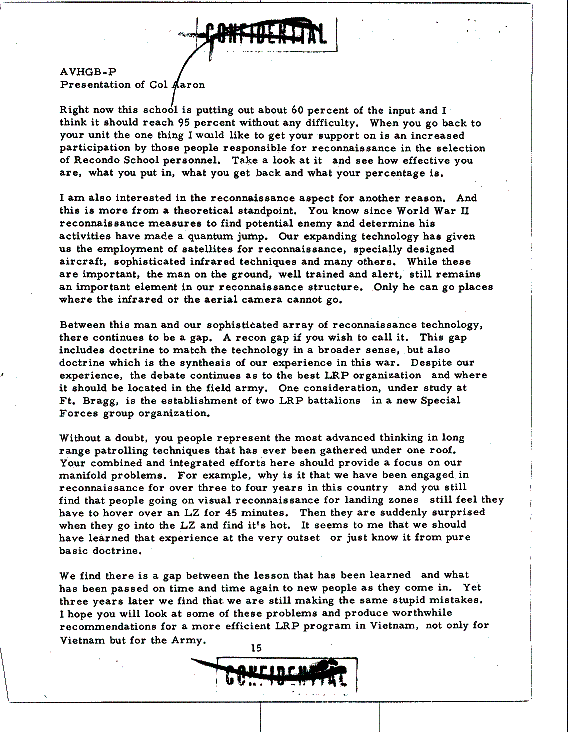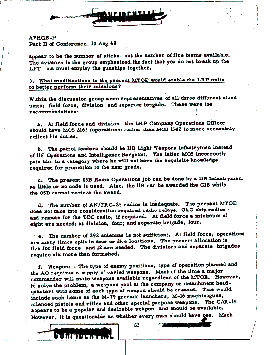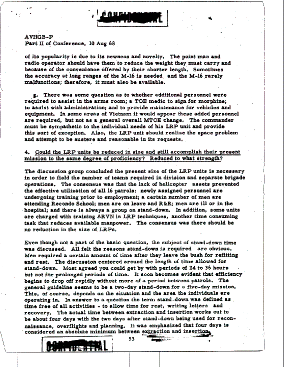 LONG RANGE PATROL CONFERENCE, MACV RECONDO SCHOOL 9 & 10 AUGUST 1968