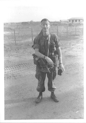 <---SFC Robert Noe, note the bandage on left arm, this photo was taken day after being wounded and just before being inserted. Photo personal property of J.P. Turner of CCN
