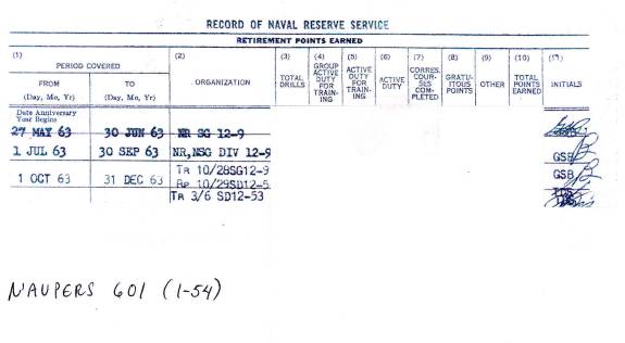 during 1963? When we look at his individual Navy Reserve Record for